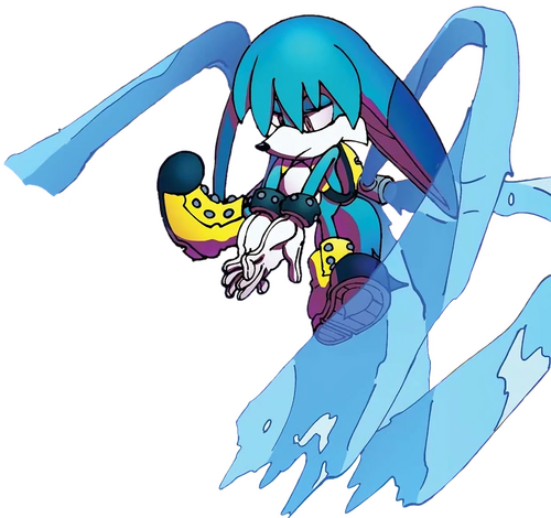꒷꒦ Kitsunami- Programmed to emulate Sonic's sidekick, Kit shares Tails' kindness and modesty, but with his positive traits turned on their head. He is defined by a soft-spoken, somber, withdrawn, and timid attitude, with very little in the way of individuality, as he is programmed to be subservient to Surge and satisfy her wants and needs.He speaks politely and formally, addressing others as "sir" or "ma'am". Kit is also quite nervous and often stutters when he talks. Despite his reserved demeanor, though, he is capable of moments of extreme emotions: when he thought Surge had received lethal injuries, he snapped into a sorrowful rage and would scream loudly as he took brutal revenge on her attacker.His connection with Surge so strong that when he thought she was dead, he instantly fell into a deep depression.Kit's power relies on the Hydro Pack, meaning that if the latter runs out of water, he will be left powerless. Furthermore, he can be zapped, up to the point of paralysis, if his water tentacles come in contact with electrical energy.